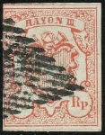| Zusatzinformationen und Suchstichworte: | Briefmarken Helvetia 46. Live-Auktion 13. Mai 2023 Los 58 Schweiz Rayon 15 Rp. ziegelrot, Type 1, entwertet mit eidg. Raute, links berührt, oben und unten mit vollständ. Trennlinien; sauber mit Befund Renggli; Kat: 1000.- Ausruf 90,00 CHF |