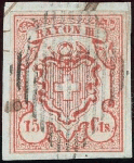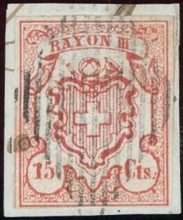 | Zusatzinformationen und Suchstichworte: | Briefmarken Helvetia 46. Live-Auktion 13. Mai 2023 Los 62 Schweiz Rayon 15 Cts. ziegelrot, Type 3, auf Briefstück, sauber übergehend gestempelt mit eidg. Raute; unten knapp aber noch vollrandig; Attest Kimmel, Kat: 1500.- Ausruf 130,00 CHF |