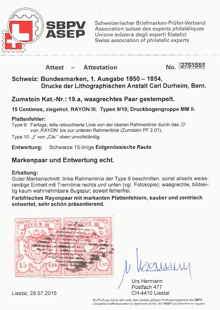 | Prüfer: | Hermann, Urs (SBPV / ASEP (Schweizerischer Briefmarken-Prüfer-Verband)) |