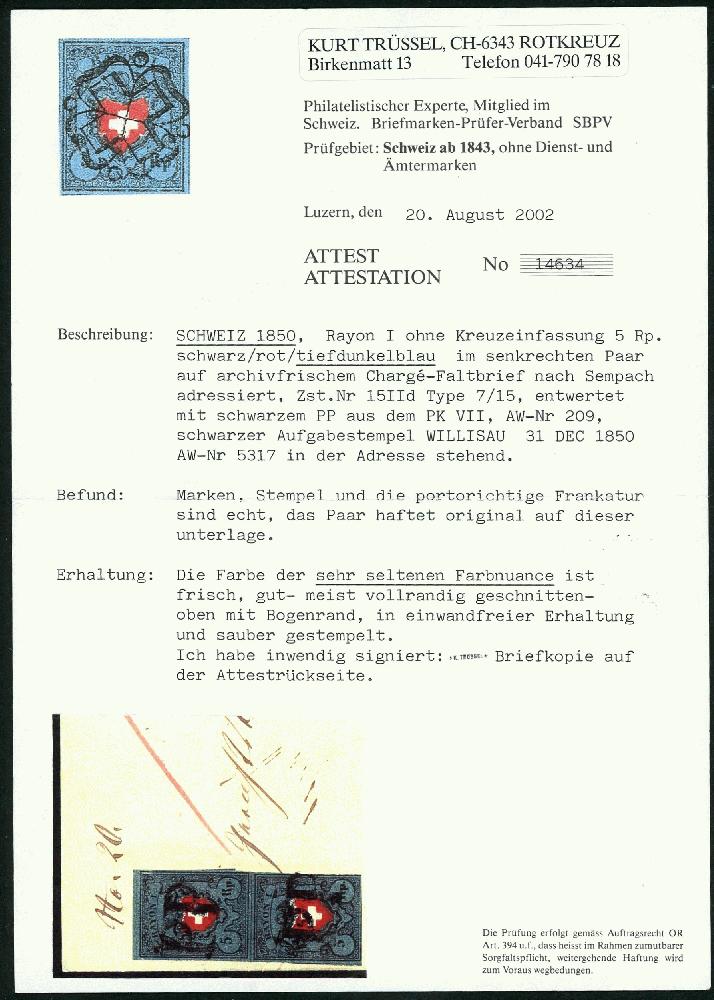 | Prüfer: | Trüssel, Kurt (SBPV / ASEP (Schweizerischer Briefmarken-Prüfer-Verband)) |