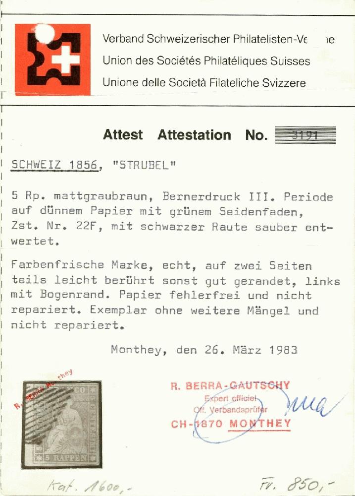 | Prüfer: | Berra-Gautschy, R. (SBPV / ASEP (Schweizerischer Briefmarken-Prüfer-Verband)) |