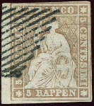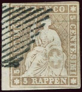 | Zusatzinformationen und Suchstichworte: | Briefmarken Helvetia 46. Live-Auktion 13. Mai 2023 Los 109 Schweiz Rayon 5 Rp. mattgraubraun, gut gerandet, links Bogenrand, an zwei Stellen berührt; sauber entwertet mit eidg. Raute, Attest Berra; Kat: 1400.- Ausruf 130,00 CHF |