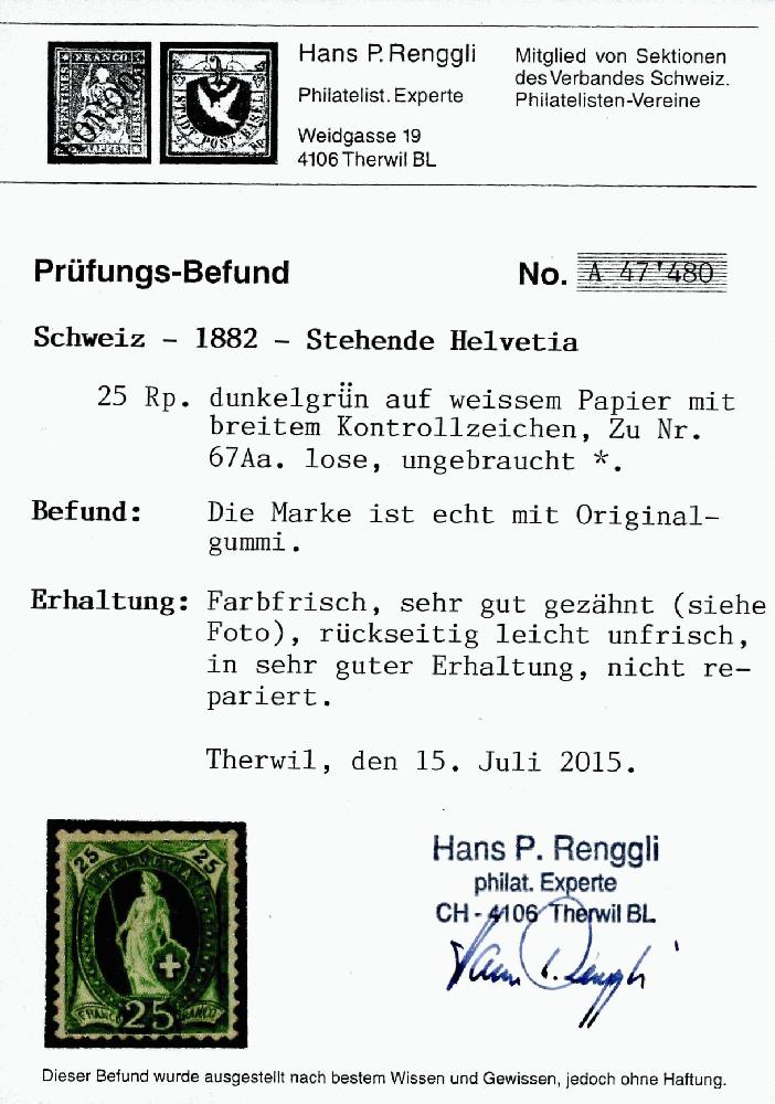 | Prüfer: | Renggli, Hans P. (SBPV / ASEP (Schweizerischer Briefmarken-Prüfer-Verband)) |