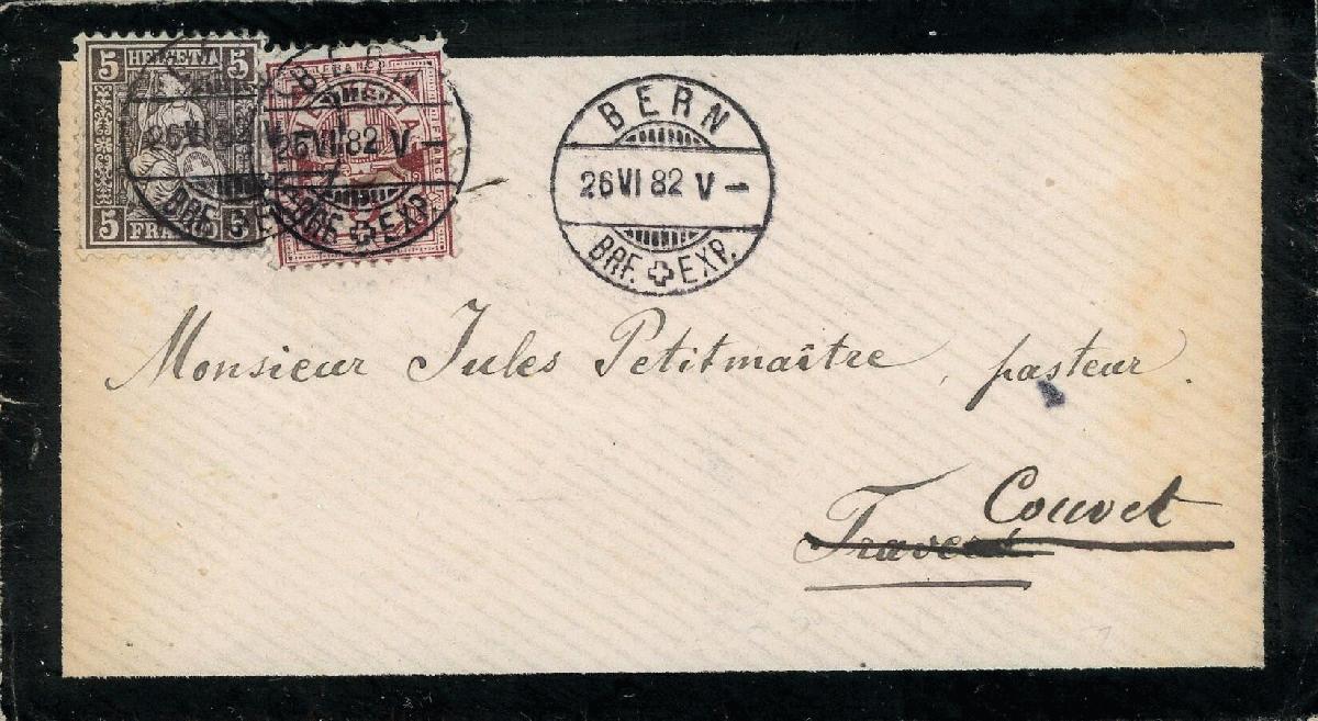 | Zusatzinformationen und Suchstichworte: | Briefmarken Helvetia 46. Live-Auktion 13. Mai 2023 Los 210 Schweiz Sitzende Helvetia gezähnt 1882: Mischfrankatur gleicher Wertstufen: 5 Rp. Sitz. Helv. und 5 Rp. Ziffermuster auf Trauerbriefchen nach Couvet, sauber entwertet BERN 26.VI.82; soweit in guter Erhaltung, Attest Abt; Kat. Zumst. Spez: 5000.- Ausruf 500,00 CHF |