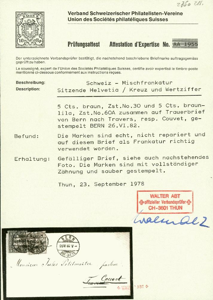| Prüfer: | Abt, Walter (SBPV / ASEP (Schweizerischer Briefmarken-Prüfer-Verband)) |