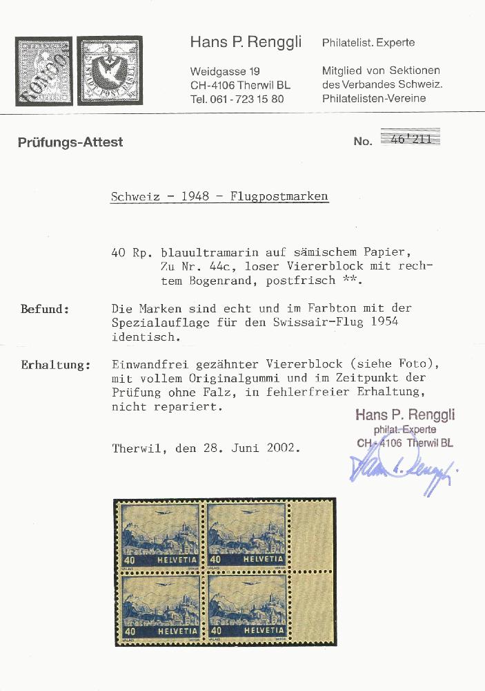 | Prüfer: | Renggli, Hans P. (SBPV / ASEP (Schweizerischer Briefmarken-Prüfer-Verband)) |