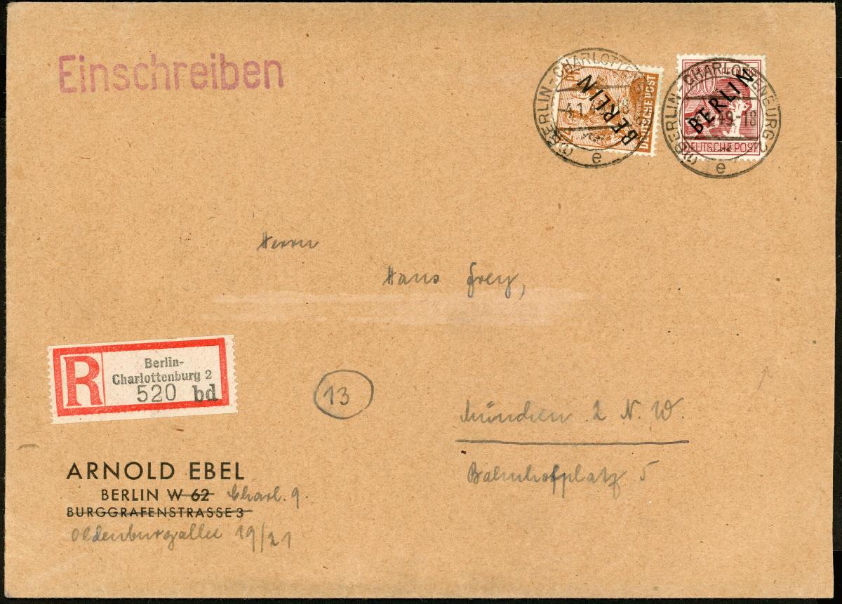 | Zusatzinformationen und Suchstichworte: | Klüttermann - 6. Auktion 27. Juli - 4. August 2023 Los 8737 Berlin 4.1.49, großformatiger R-Brief ab Charl. 2 mit reiner Schwarzaufdruck. MiF 24 und 60 Pfg. ohne Kenntlichmachung der Westwährung, selten! FA Schlegel Ausruf 400,00 EUR |