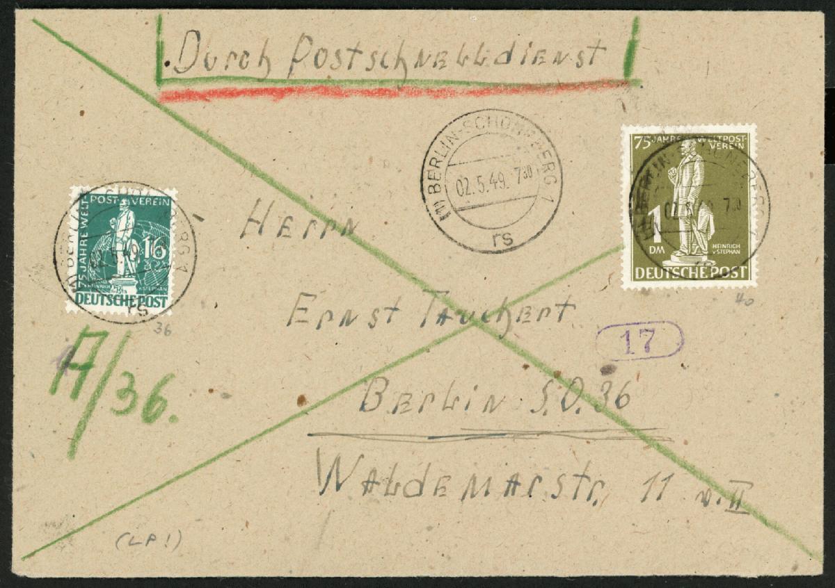 | Zusatzinformationen und Suchstichworte: | Klüttermann - 6. Auktion 27. Juli - 4. August 2023 Los 8898 Berlin 1 Mk. Stephan auf Postschnelldienstbrief 1949 ab Schöneberg, die zufrankierte 16 Pfg. ist zuviel und wurde wohl unnötigerweise frankiert, FB Schlegel Ausruf 250,00 EUR |
