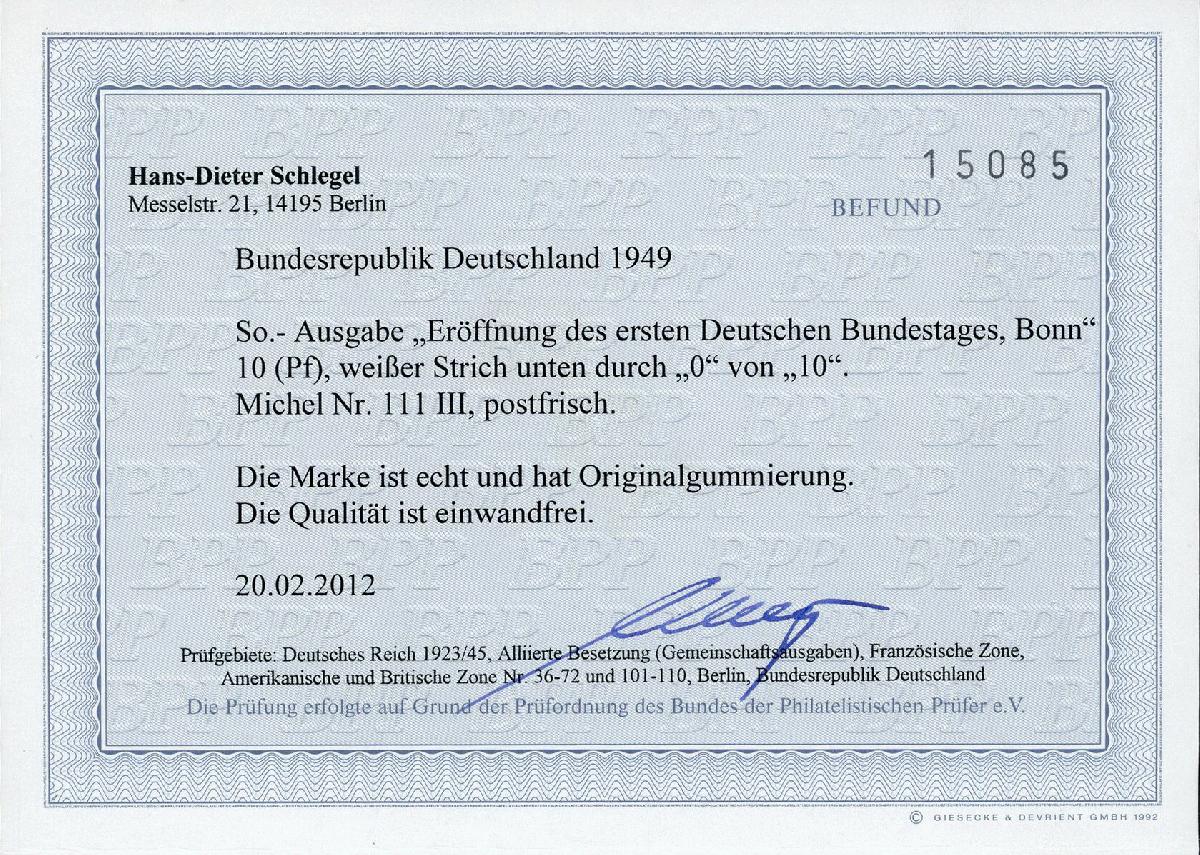 | Prüfer: | Schlegel, Hans-Dieter (BPP (Bund Philatelistischer Prüfer)) |