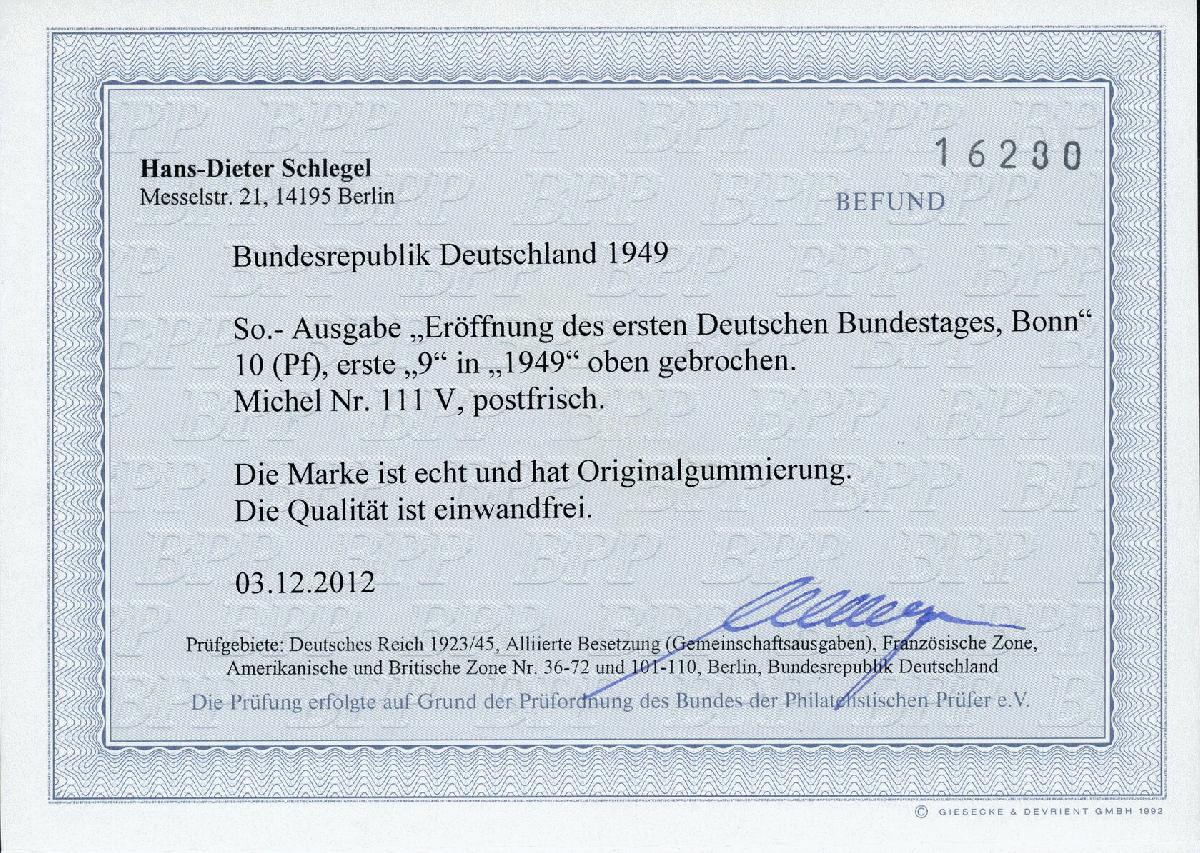 | Prüfer: | Schlegel, Hans-Dieter (BPP (Bund Philatelistischer Prüfer)) |