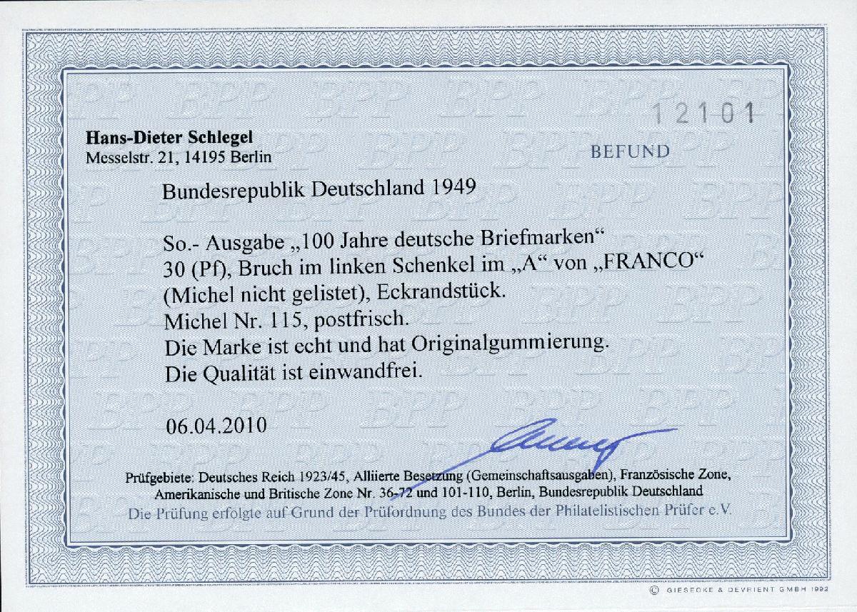 | Prüfer: | Schlegel, Hans-Dieter (BPP (Bund Philatelistischer Prüfer)) |