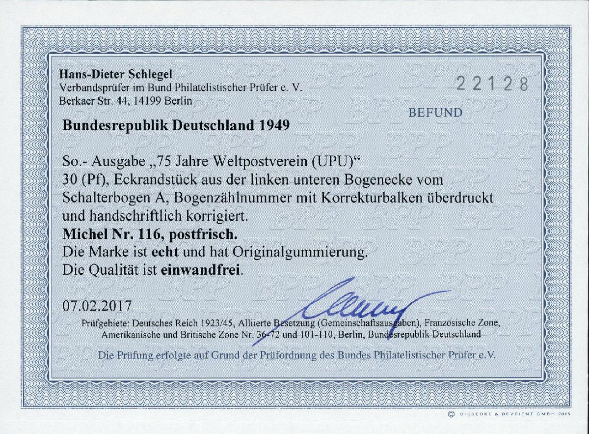 | Prüfer: | Schlegel, Hans-Dieter (BPP (Bund Philatelistischer Prüfer)) |
