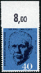 | Zusatzinformationen und Suchstichworte: | Klüttermann - 6. Auktion 27. Juli - 4. August 2023 Los 8293 Bundesrepublik Deutschland 40 Pf. Marshall, oben ungezähntes Oberrandstück, tadellos postfrisch, FB Schlegel (2022) "einwandfrei" Katalogwert: 400 Ausruf 80,00 EUR |