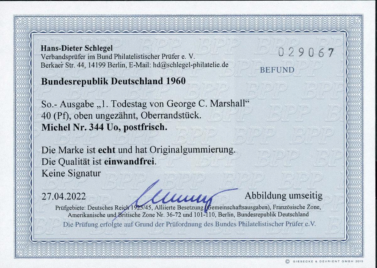 | Prüfer: | Schlegel, Hans-Dieter (BPP (Bund Philatelistischer Prüfer)) |