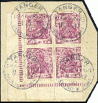 | Zusatzinformationen und Suchstichworte: | Veuskens 121. Auktion 10. - 11. August 2023 Los 1398 Deutsche Auslandspost Marokko 60 Pf. Germania 1911, im Friedensdruck, als Viererblock aus der Bogenecke unten rechts, auf Briefstück ideal gest. mit vier klaren Abschlägen 'Tanger-Deutsche Post-Marokko XI.3.12 c'. Die Marken teils mit leichten Randmängeln und/oder Stockflecken, mit Farbfotobefund Jäschke-Lantelme BPP, Pracht. M€ ca. 1.000,-- Ausruf 130,00 EUR |