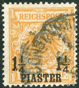 | Zusatzinformationen und Suchstichworte: | Veuskens 121. Auktion 10. - 11. August 2023 Los 1406 Deutsche Auslandspost Türkei 1 1/4 Pia. auf 25 Pf. Krone/Adler in a.-Farbe gelborange, mit echtem Stpl. (etwas verwischt) 'Constantin(opel) 6 (...) 9 (...)', mit Farbfotobefund Jäschke-Lantelme BPP, zusätzl. mehrfach sig. M€ 350,-- Ausruf 70,00 EUR |