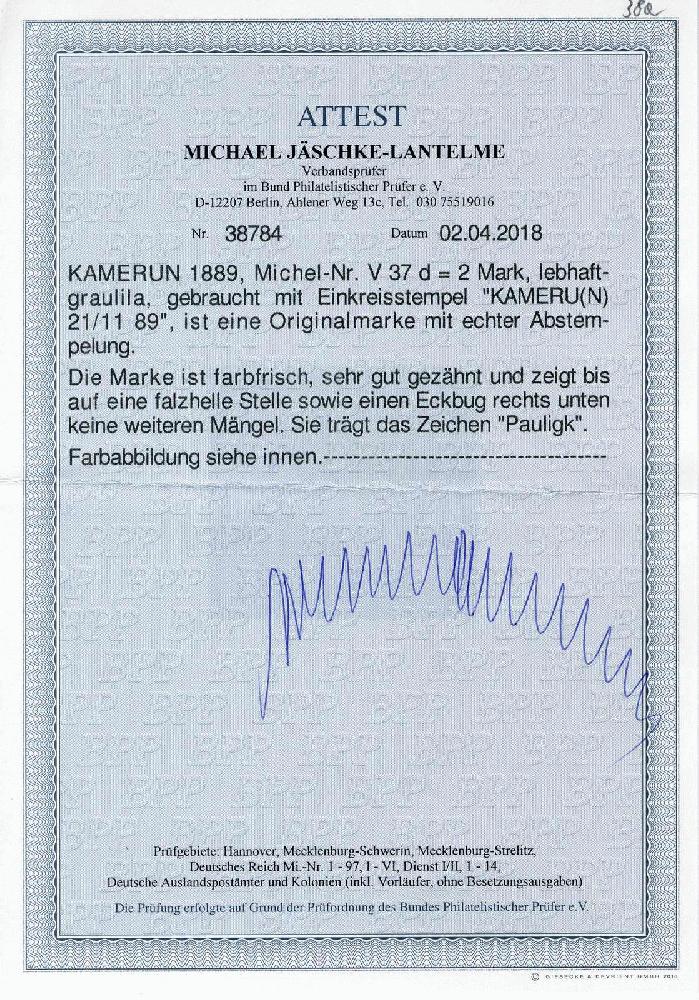 | Prüfer: | Jäschke-Lantelme, Michael (BPP (Bund Philatelistischer Prüfer)) |