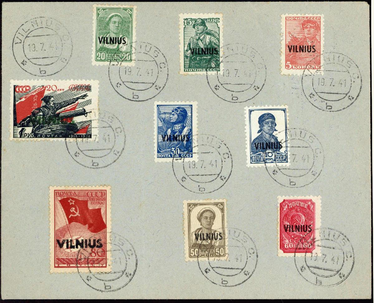 | Zusatzinformationen und Suchstichworte: | Veuskens 121. Auktion 10. - 11. August 2023 Los 1613 Deutsche Besetzung II. WK Litauen Frei- und Sondermarken der Sowjetunion mit Aufdruck 'Vilnius' Juli 1941, kpl. vs. auf unbeschriftetem Umschlag, gest. 'Vilnius b 19.7.1941', Attest Krischke, welche auf Gummi- bzw. Stockfleckchen in der Zähnung hinweist, Pracht. M€ 1.200,-- Ausruf 250,00 EUR |