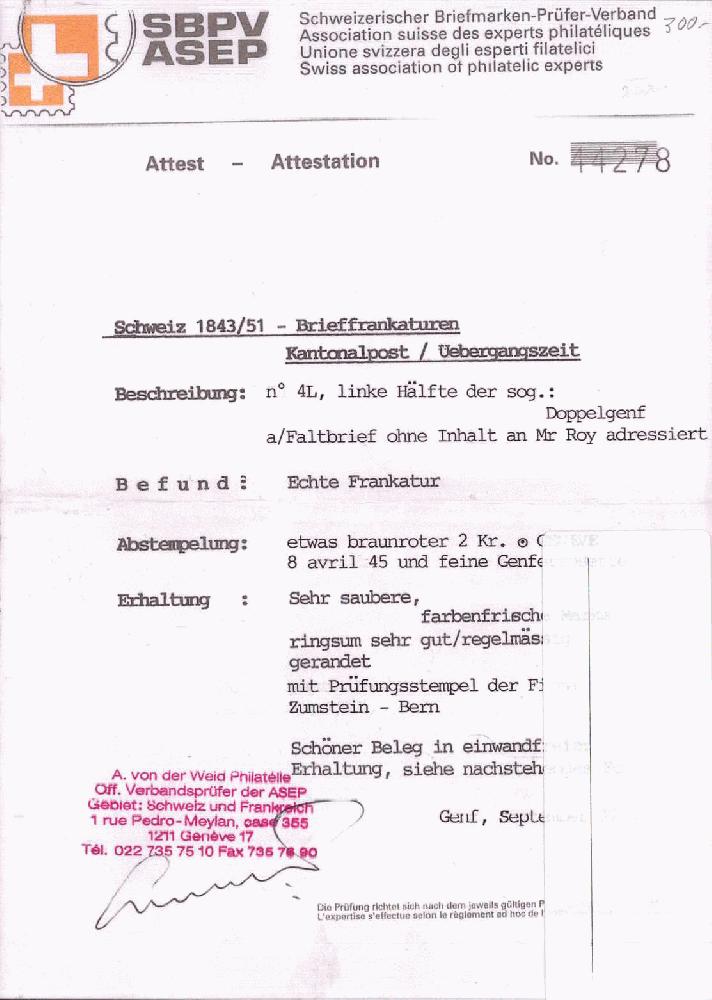 | Prüfer: | von der Weid, Alain (SBPV / ASEP (Schweizerischer Briefmarken-Prüfer-Verband)) |