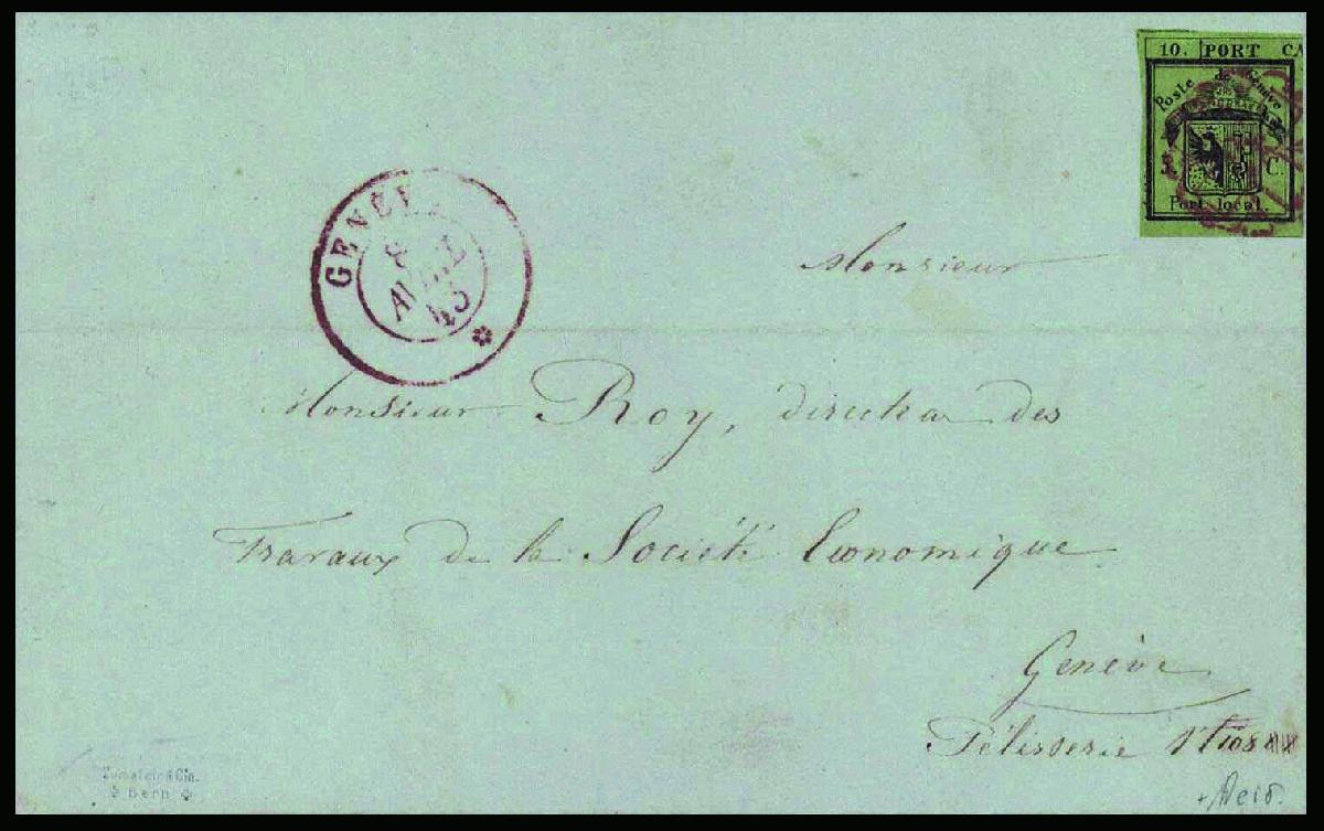 | Zusatzinformationen und Suchstichworte: | 44. Jean-Paul Bach Auktion 13. - 16. Juli 2023 Los 799 Schweiz Kanton Genf Sehr farbfrische halbe Doppelgenf, linke Hälfte, die saubere GENFER-Rosette, links der Aufgabe-Stempel GENEVE 8 AVRIL 1845, schöner Orts-Faltbrief, an Monsieur Roy in Genf adressiert. Fehlerfreie Erhaltung. Sign. Zumstein und Attest von der Weid Ausruf 10.000,00 CHF |