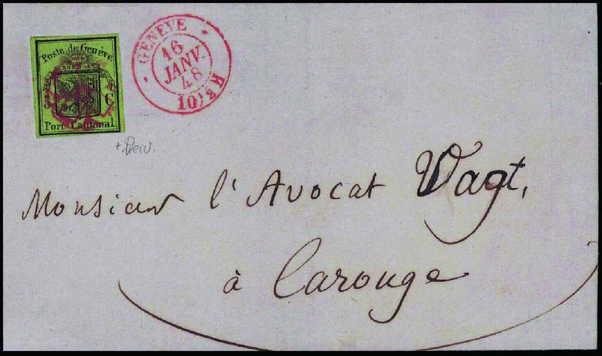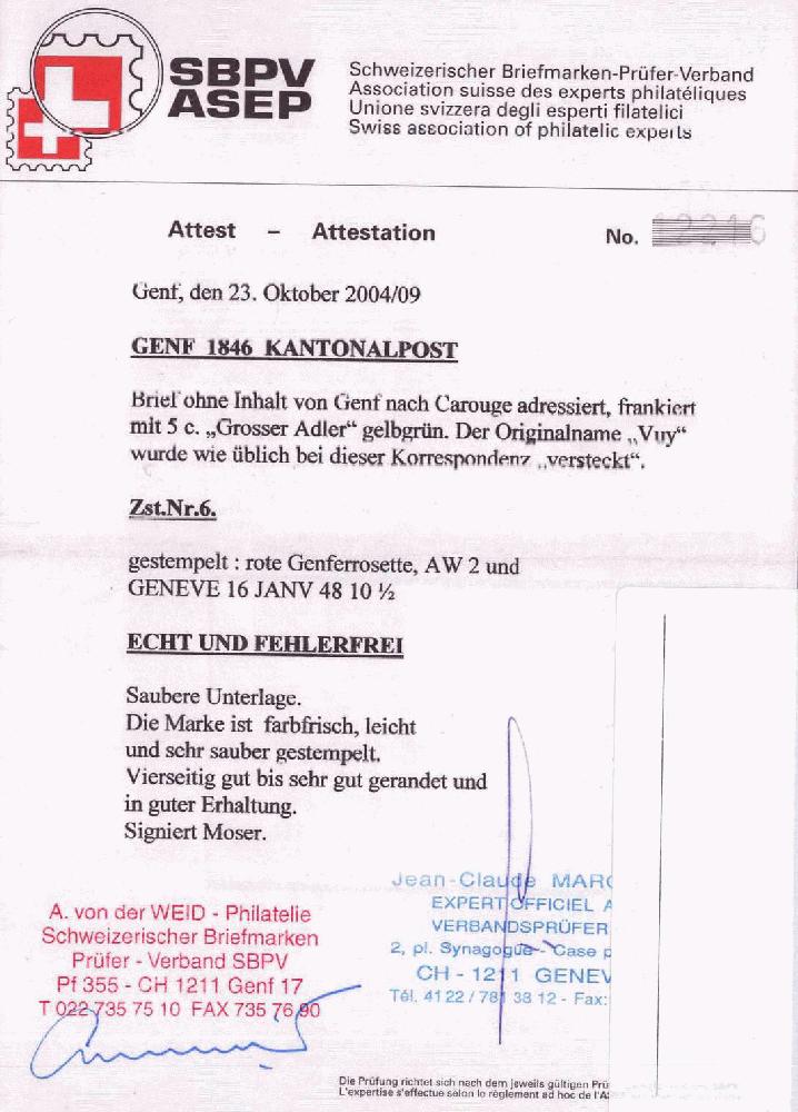 | Zusatzinformationen und Suchstichworte: | 44. Jean-Paul Bach Auktion 13. - 16. Juli 2023 Los 815 Schweiz Kanton Genf Sehr farbfrisch, allseitig vollrandig, meist sehr breit gerandet, zentrische, rote GENFER-Rosette (AW Nr. 2), rechts der schöne Aufgabe-Stempel GENEVE 16 JANV. 48, Der Originalname in der Adresse - VUY, wurde wie üblich bei dieser bekannte Korrespondenz "versteckt", interessanter Brief in fehlerfreier Erhaltung. Sign. Moser und Doppelattest von der Weid/Marchand Ausruf 2.800,00 CHF |