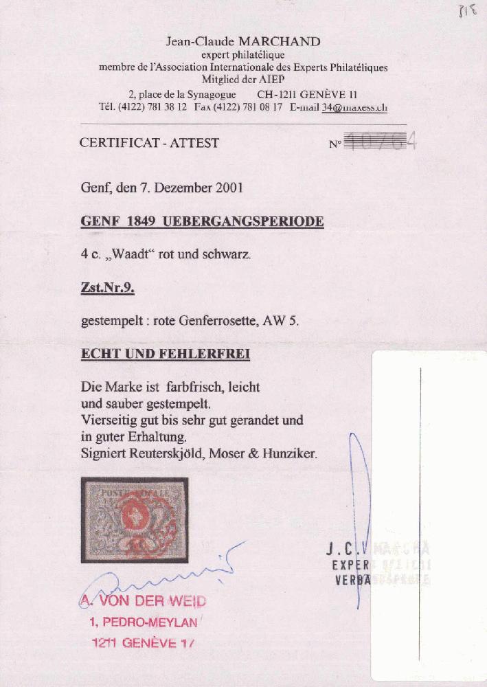 | Zusatzinformationen und Suchstichworte: | 44. Jean-Paul Bach Auktion 13. - 16. Juli 2023 Los 854 Schweiz Übergangszeit, Waadt, Neuenburg, Winterthur Farbfrisch, allseitig vollrandig, saubere, rote GENFER-Rosette (AW Nr. 5), fehlerfreie Erhaltung. Sign. Reuterskiöld, Moser, Hunziker und Attest Marchand/von der Weid Ausruf 15.000,00 CHF |