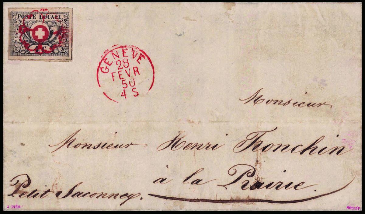 | Zusatzinformationen und Suchstichworte: | 44. Jean-Paul Bach Auktion 13. - 16. Juli 2023 Waadt 4 als besonders farbfrische Frankatur mit zentrischer, roter GENFER-Rosette (AW Nr. 3), allseitig regelmässig breitrandig, rechts der rote Aufgabe-Stempel GENEVE 28 FEVR 50, nach LA PRAIRIE adressiert. 5 Cts-Porto für einen Kantonsbrief, gültig ab Anfang 1850 mit der Aufbrauchsverwendung der Waadt 4. Tadellose Luxus-Erhaltung. Sign. Köhler, Atteste von der Weid und Eichele Ausruf 32.000,00 CHF |