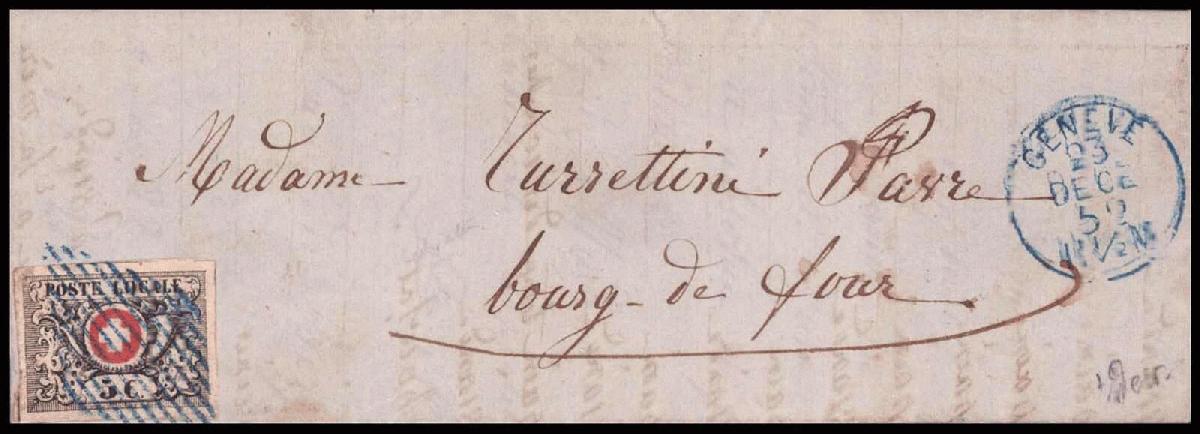 | Zusatzinformationen und Suchstichworte: | 44. Jean-Paul Bach Auktion 13. - 16. Juli 2023 Los 870 Schweiz Übergangszeit, Waadt, Neuenburg, Winterthur Sehr farbfrisch, allseitig vollrandig, besonders schöne, blaue Raute, auf den fehlerfreien Brief übergehend, blauer Aufgabestempel GENEVE 23 DEC 52, sehr seltene Entwertung und in tadelloser Erhaltung. Attest von der Weid Ausruf 6.000,00 CHF |