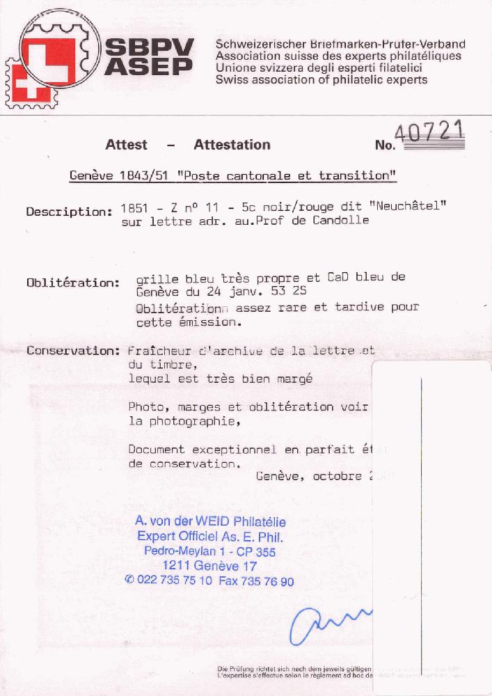 | Prüfer: | von der Weid, Alain (SBPV / ASEP (Schweizerischer Briefmarken-Prüfer-Verband)) |