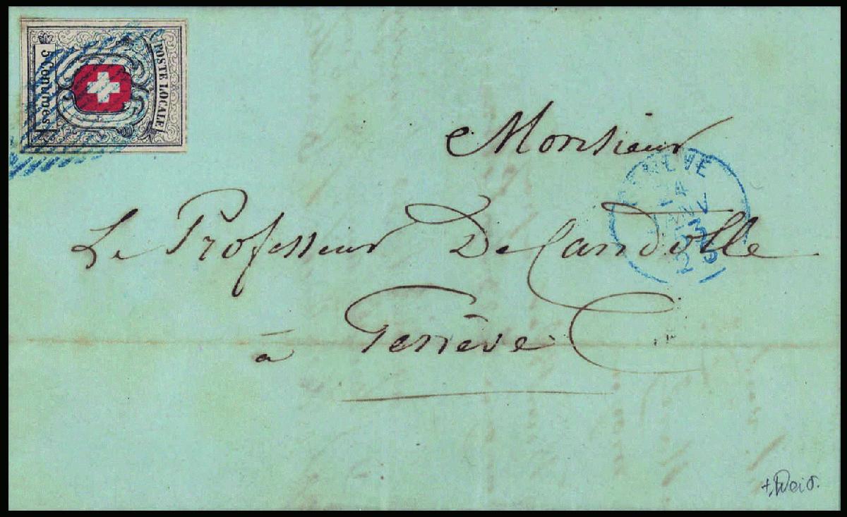 | Zusatzinformationen und Suchstichworte: | 44. Jean-Paul Bach Auktion 13. - 16. Juli 2023 Los 882 Schweiz Übergangszeit, Waadt, Neuenburg, Winterthur Farbfrisch und allseitig vollrandig, besonders schöne, blaue Raute, auf den Brief übergehend, blauer Aufgabe-Stempel GENEVE 24 JANV 53, selten und fehlerfrei. Attest von der Weid Ausruf 10.000,00 CHF |