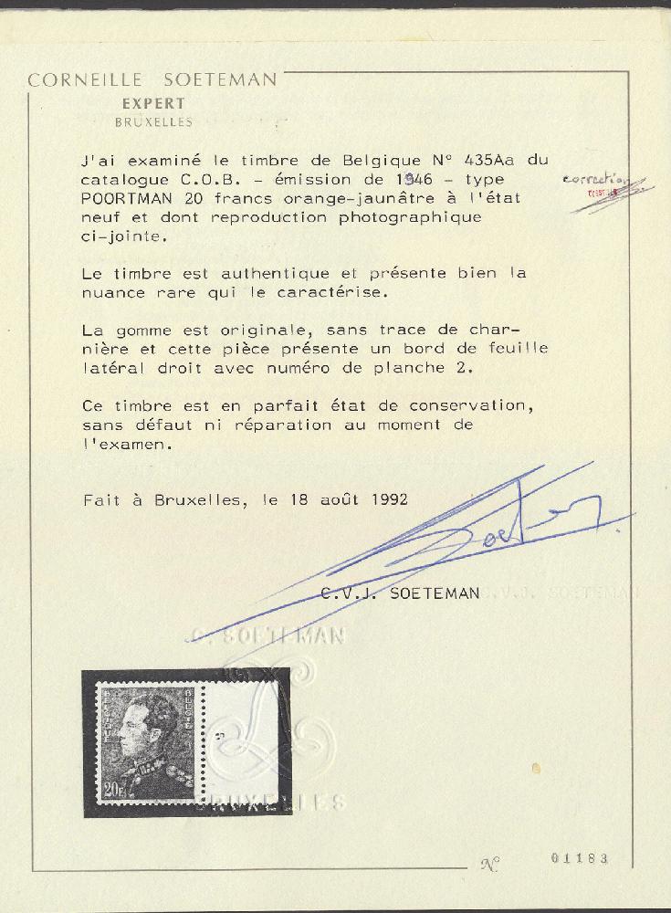 | Zusatzinformationen und Suchstichworte: | 176. Van Looy Auktion 19. - 24. Februar 2024 Los 2228 Belgien 1896-1949 N° 435Aa 20fr. bleekoranje Ausruf 80,00 EUR |