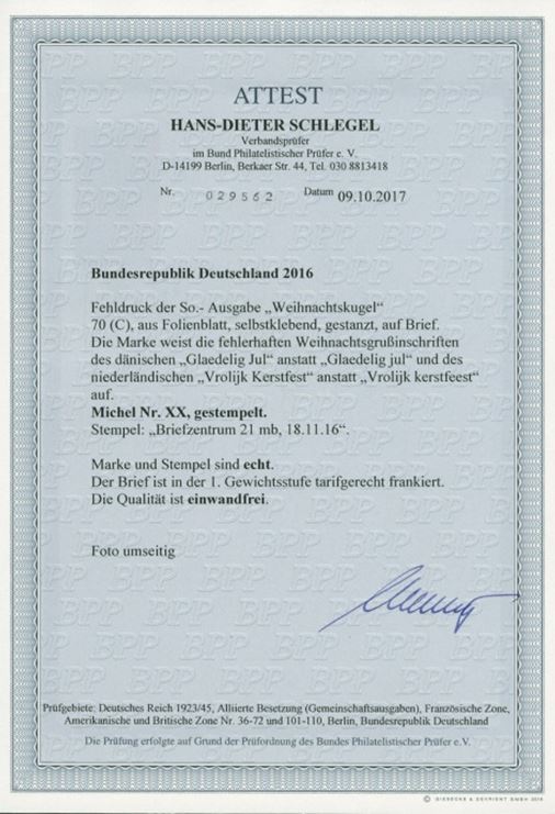 | Prüfer: | Schlegel, Hans-Dieter (BPP (Bund Philatelistischer Prüfer)) |