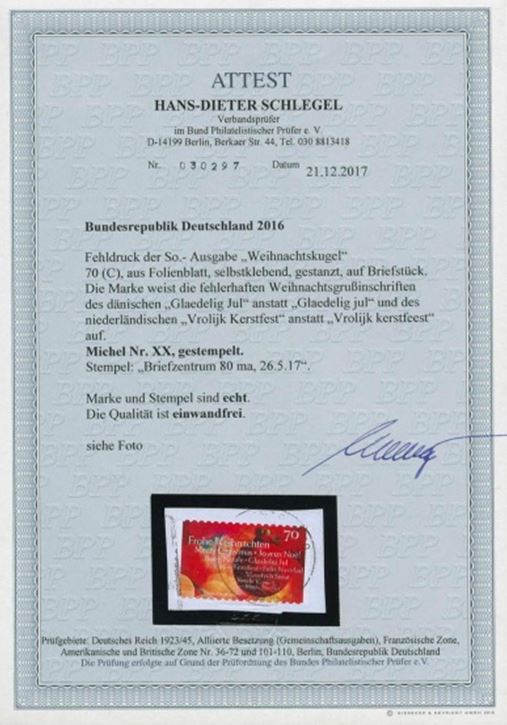 | Prüfer: | Schlegel, Hans-Dieter (BPP (Bund Philatelistischer Prüfer)) |