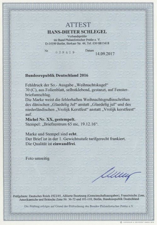 | Prüfer: | Schlegel, Hans-Dieter (BPP (Bund Philatelistischer Prüfer)) |