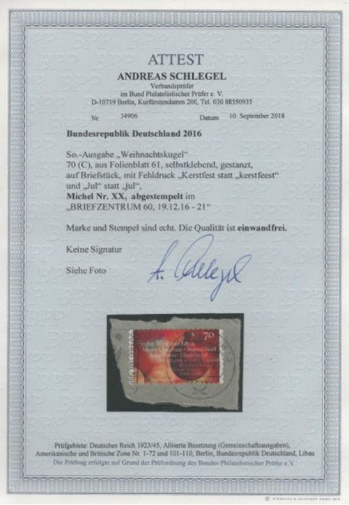 | Prüfer: | Schlegel, Andreas (BPP (Bund Philatelistischer Prüfer)) |