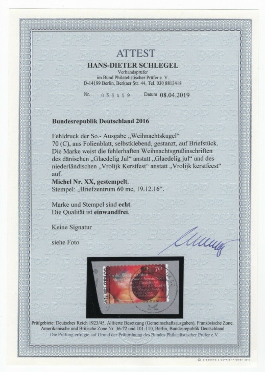 | Prüfer: | Schlegel, Hans-Dieter (BPP (Bund Philatelistischer Prüfer)) |