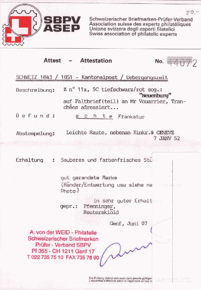 | Prüfer: | von der Weid, Alain (SBPV / ASEP (Schweizerischer Briefmarken-Prüfer-Verband)) |