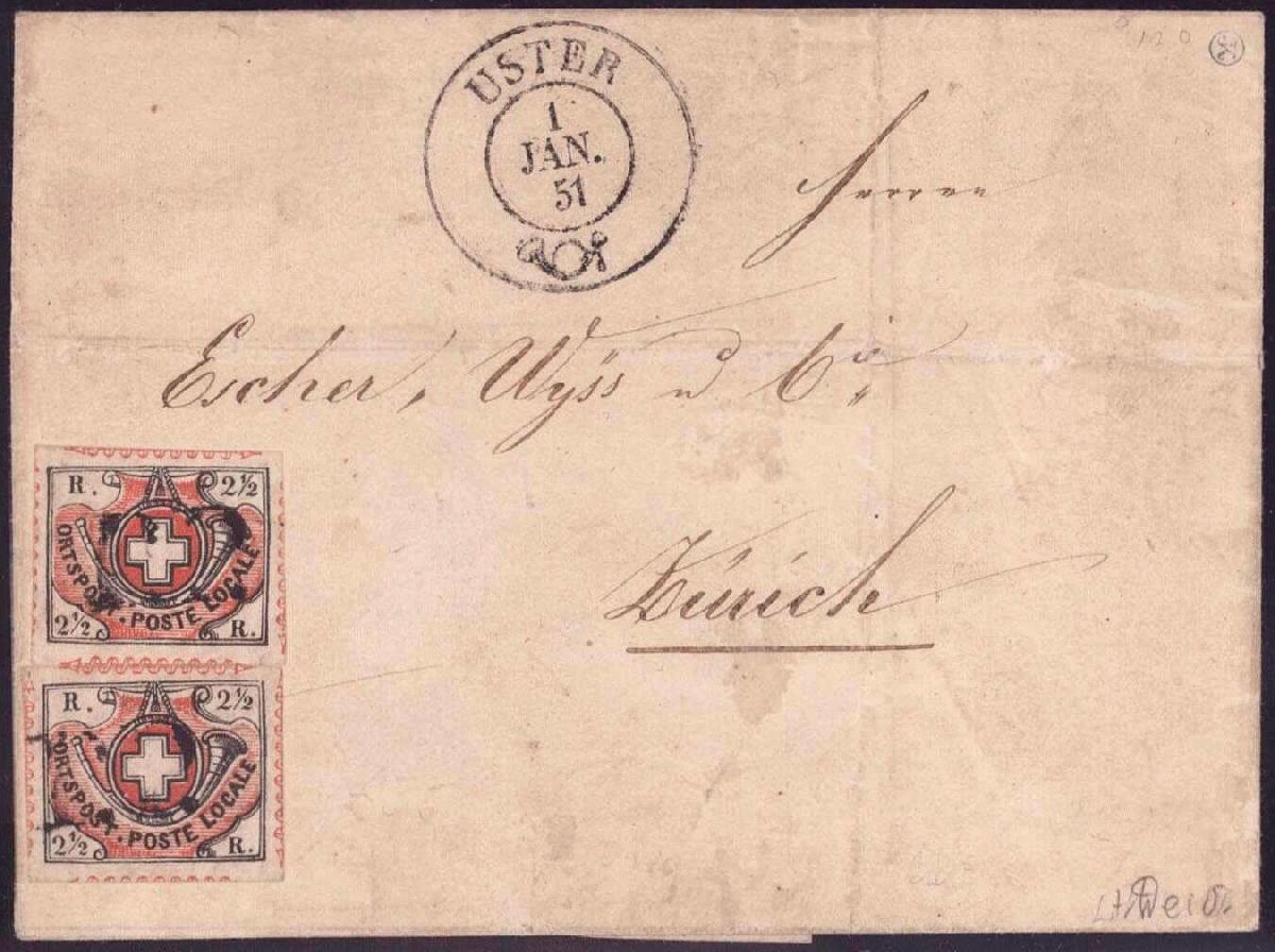 | Zusatzinformationen und Suchstichworte: | 44. Jean-Paul Bach Auktion 13. - 16. Juli 2023 Los 893 Schweiz Übergangszeit, Waadt, Neuenburg, Winterthur Sehr farbfrische Marken, als Paar geklebt, allseitig vollständige Trennungsornamente, je mit sauberen, schwarzen P.P. entwertet, oben der deutliche Aufgabestempel USTER 1 JANV 51, fehlerfreie Erhaltung. Attest von der Weid Ausruf 24.000,00 CHF |