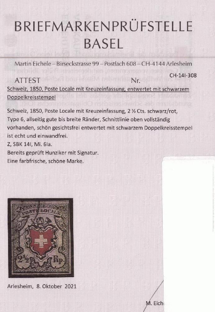 | Zusatzinformationen und Suchstichworte: | 44. Jean-Paul Bach Auktion 13. - 16. Juli 2023 Los 913 Schweiz Orts-Post, Poste Locale Type, 6, farbfrisch, allseitig gute bis breite Ränder, Schnittlinie oben vollständig vorhanden, schön gestempelt mit schwarzem Doppelkreisstempel, fehlerfreie Erhaltung. Sign. Hunziker, Attest Eichele. Kat. 2'100.- Ausruf 500,00 CHF |