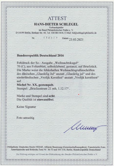 | Prüfer: | Schlegel, Hans-Dieter (BPP (Bund Philatelistischer Prüfer)) |