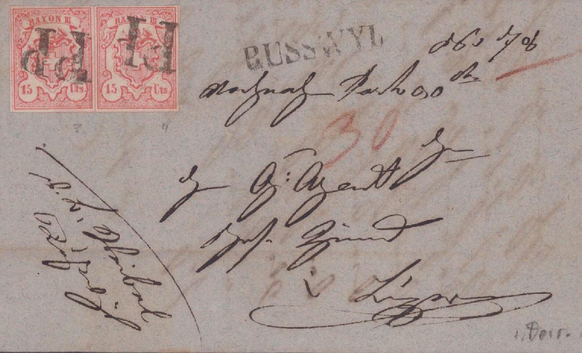 | Zusatzinformationen und Suchstichworte: | 44. Jean-Paul Bach Auktion 13. - 16. Juli 2023 Los 1135 Rayon III, kleine Ziffer (CTS.) Typen 3+4, farbfrisches, waagerechtes Paar, allseitig vollrandig, links und rechts mit den vollständigen Schnittlinien, sauber aufgesetzte, schwarze LUZERNER-PP, rechts der Aufgabe-Stabstempel RUSSWYL, vollständiger NN-Brief nach LUZERN adressiert, fehlerfreie Erhaltung, aus dem bekannten Zünd-Archiv. Attest von der Weid Ausruf 3.800,00 CHF |