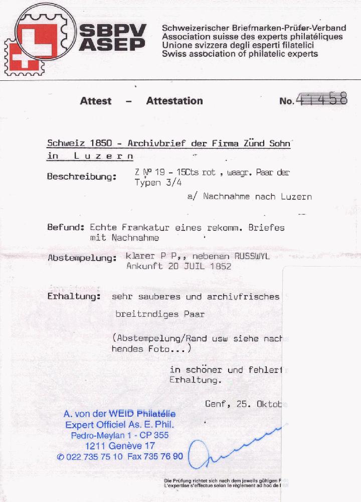 | Prüfer: | von der Weid, Alain (SBPV / ASEP (Schweizerischer Briefmarken-Prüfer-Verband)) |