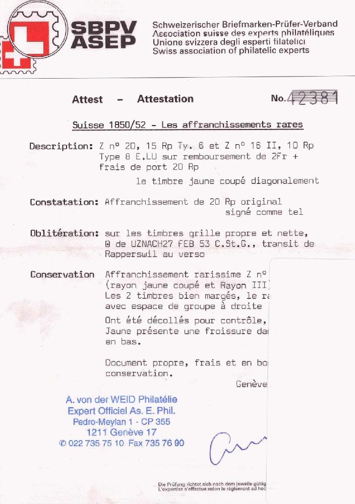 | Prüfer: | von der Weid, Alain (SBPV / ASEP (Schweizerischer Briefmarken-Prüfer-Verband)) |