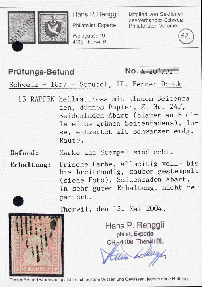 | Prüfer: | Renggli, Hans P. (SBPV / ASEP (Schweizerischer Briefmarken-Prüfer-Verband)) |