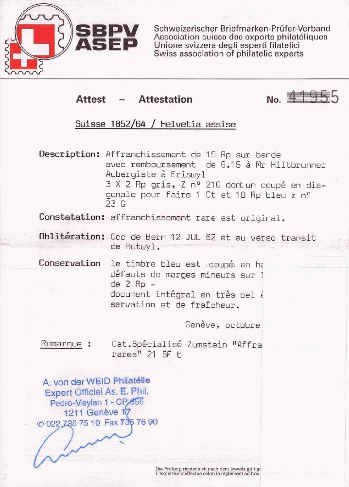 | Prüfer: | von der Weid, Alain (SBPV / ASEP (Schweizerischer Briefmarken-Prüfer-Verband)) |