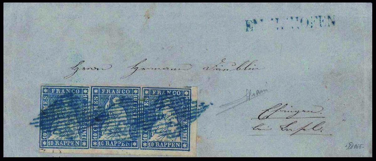 | Zusatzinformationen und Suchstichworte: | 44. Jean-Paul Bach Auktion 13. - 16. Juli 2023 Los 1358 Strubel Frankaturen 10 Rp. grauultramarin, waagerechter Dreierstreifen auf dünnem Papier, sehr farbfrisch, allseitig weissrandig, von der unteren rechten Bogenecke, saubere eidgenössische, blaue Rauten, auf den schönen blauen Brief übergehend, rechts oben der blaue Stabstempel EMMISHOFEN, rückseitige Stempel TÄGERWILEN 1 SEPT 56, ZÜRICH 2 SEP 56, BASEL 2 SEP 56 und der schwarze Bahnpost-Kastenstempel E.B. 3 SEPT. CURS III, nach EFRINGEN (Baden) adressiert. Fehlerfrei erhaltener Auslandsbrief. Sign. von der Weid, Sorani und ausführliches Attest Hermann Ausruf 4.500,00 CHF |