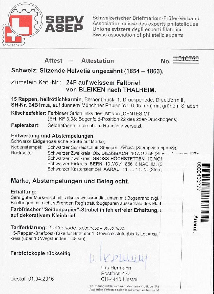 | Prüfer: | Hermann, Urs (SBPV / ASEP (Schweizerischer Briefmarken-Prüfer-Verband)) |