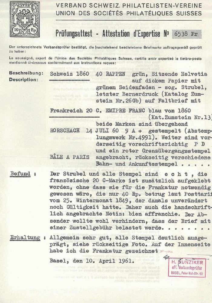 | Prüfer: | Hunziker, Hans (SBPV / ASEP (Schweizerischer Briefmarken-Prüfer-Verband)) |
