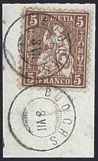 | Zusatzinformationen und Suchstichworte: | 44. Jean-Paul Bach Auktion 13. - 16. Juli 2023 SITZENDE HELVETIA - ZWERGSTEMPEL OHNE JAHRESZAHL BUOCHS 3 VII, 5 Rp. braun, auf kleinem Briefstück, Attest Berra Ausruf 40,00 CHF |