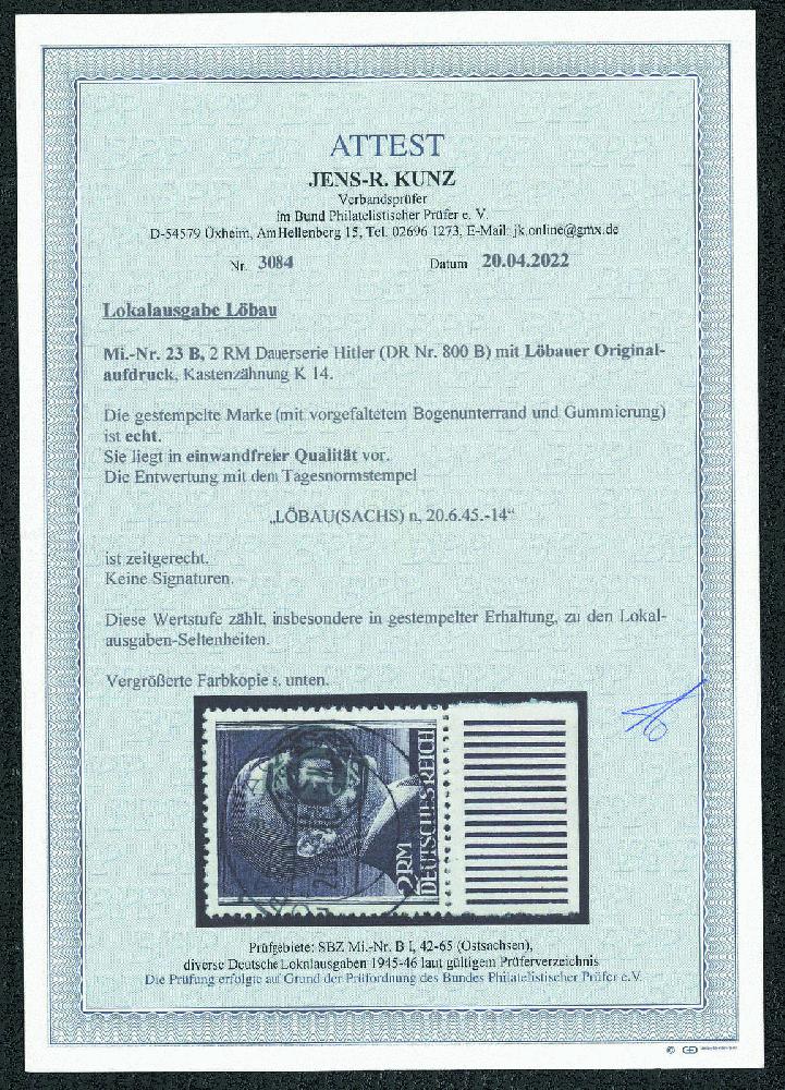 | Prüfgebiet: | Deutsche Lokalausgaben 1945 Löbau |